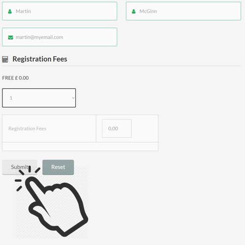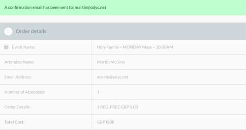 Of course there’s no charge for Mass – but this is a booking system, so under Registration Fees (which will always be ZERO) – click on the drop down list and select 1.